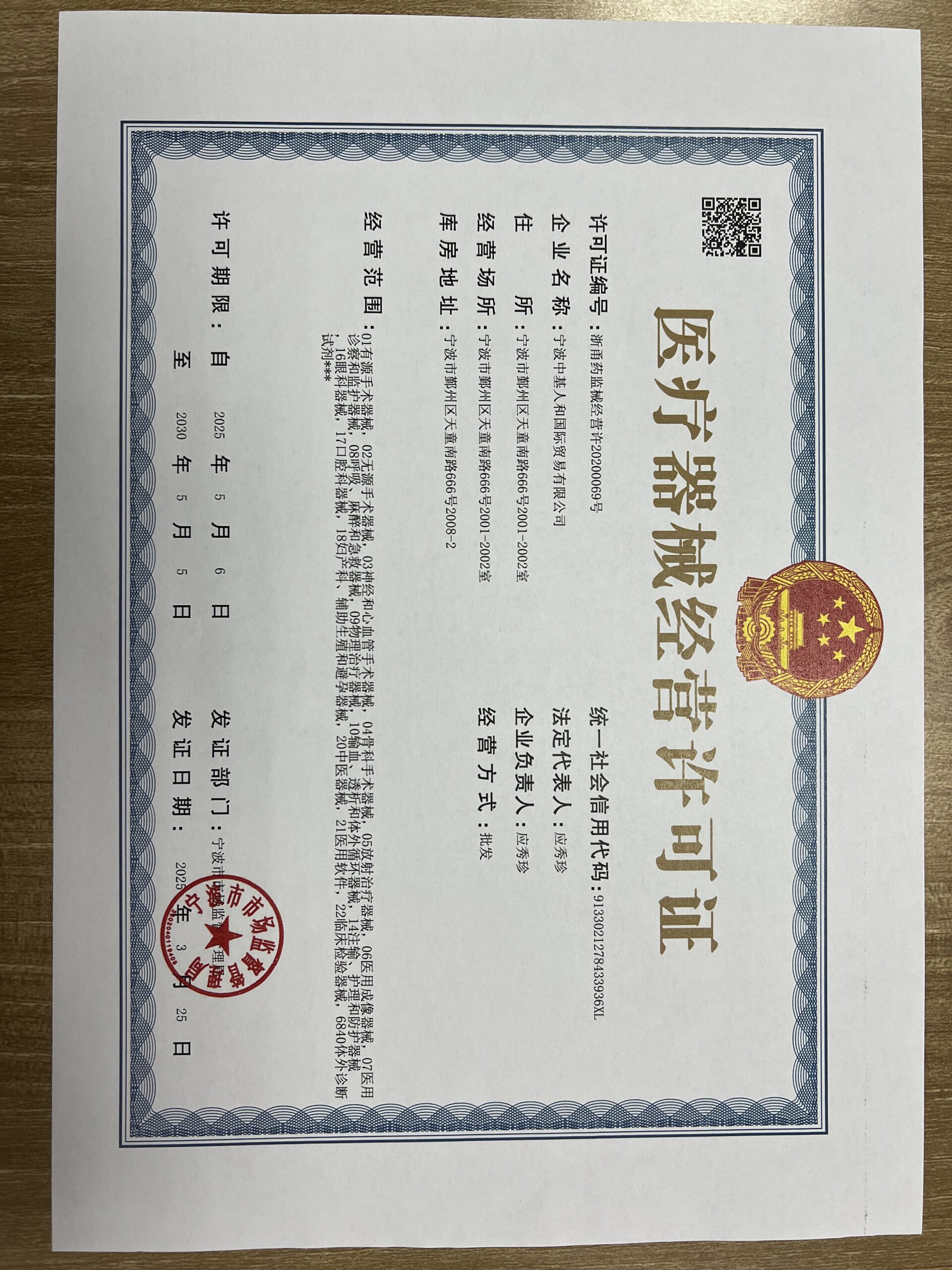 医疗器械经营许可证